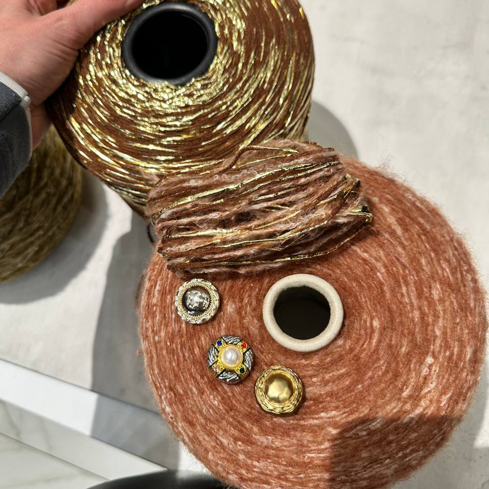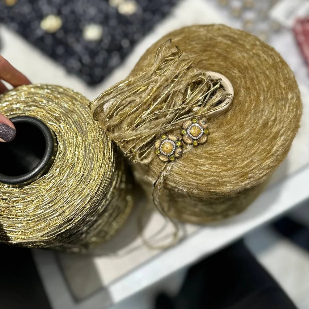Полотно из Hugo — пластичное, мягкое и невероятно приятное в носке. Драпируется, не вытягивается, красиво смотрится в глади и структурных узорах. Цвета с глубиной, фактура словно тканая, очень тактильная.