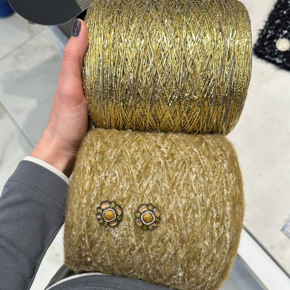 Вяжите джемперы, кардиганы, платья, юбки, жакеты и костюмы Chanel. Для подмота подойдут Minerva, Cotolino, сияющая поталь Silver Star.