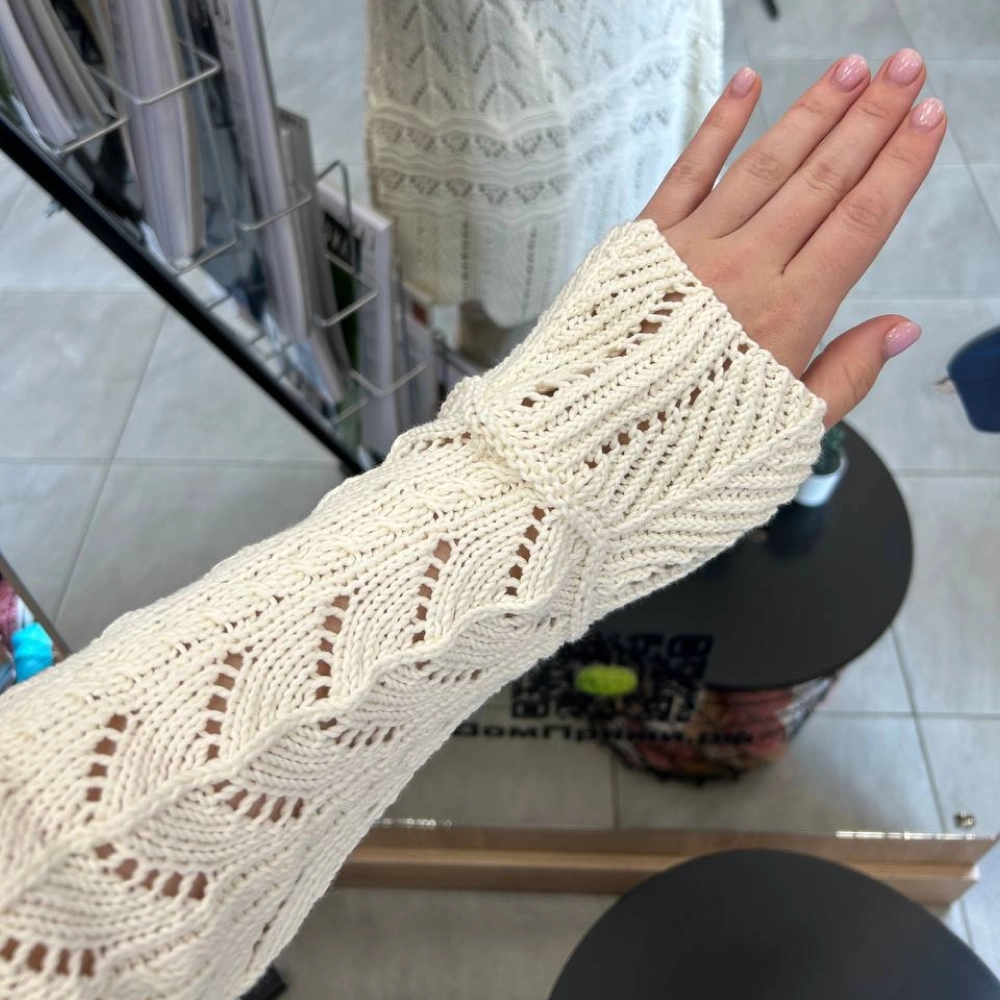 Мерсеризация усиливает свойства хлопка: нить не вытягивается, не скатывается, отталкивает грязь и сохраняет цвет. Цвет «Пломбир» — универсальный: вяжите его самостоятельно или используйте в подмот. Особенно хорош в воздушных изделиях крючком на фоне загорелой кожи.