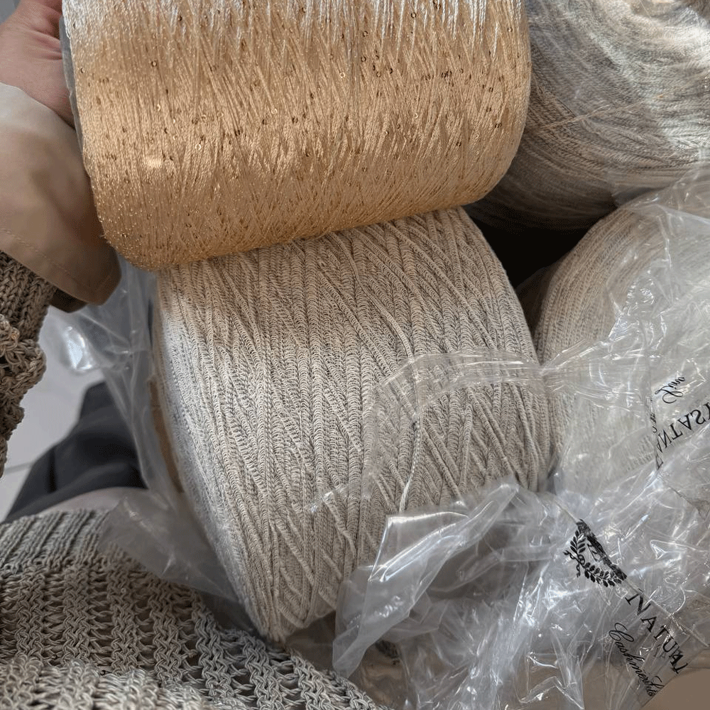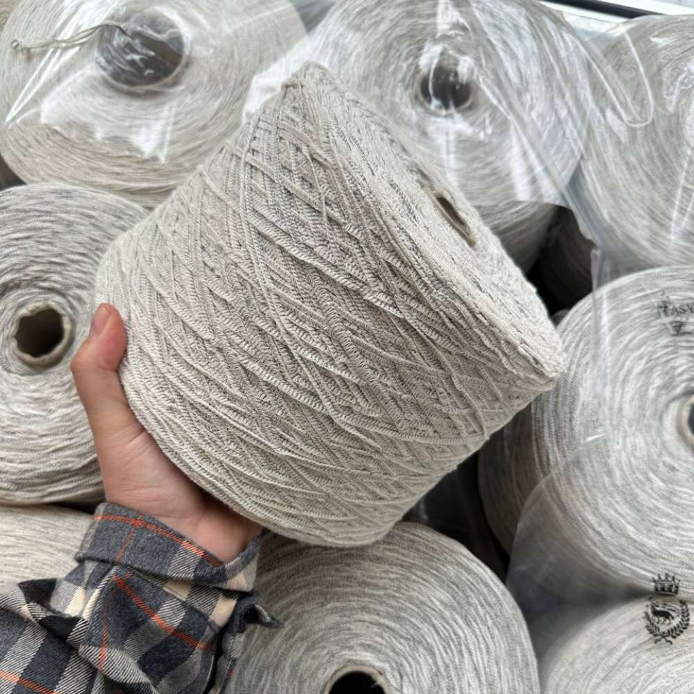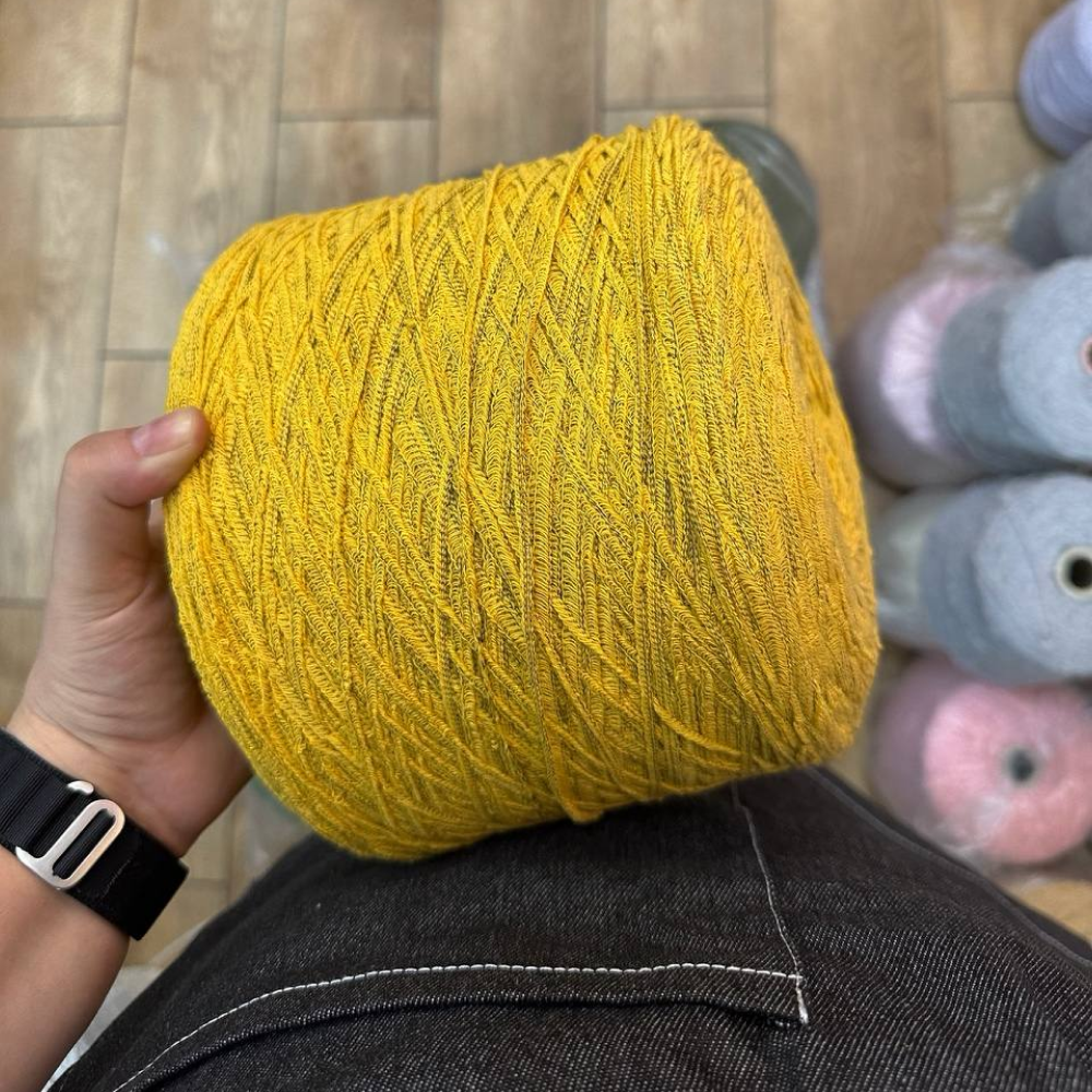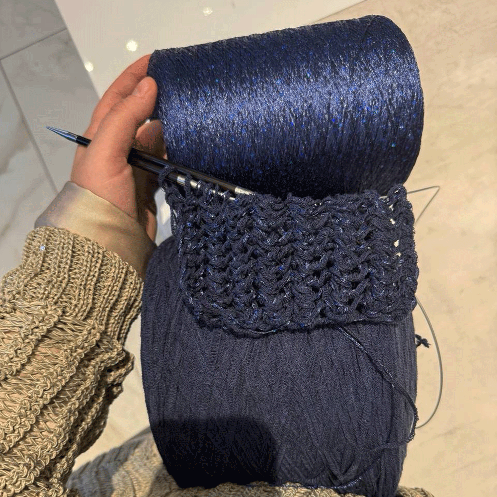 Dorimello — необычайно тактильная нить с кружевной структурой. Хлопковая нить снует между прочными нитями основы и создает эффект кружева.