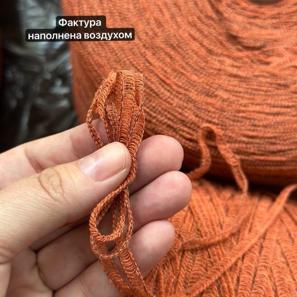 Модная фактура с отвяза бренда. В процессе вязания нить складывается пополам и выглядит ажурной.