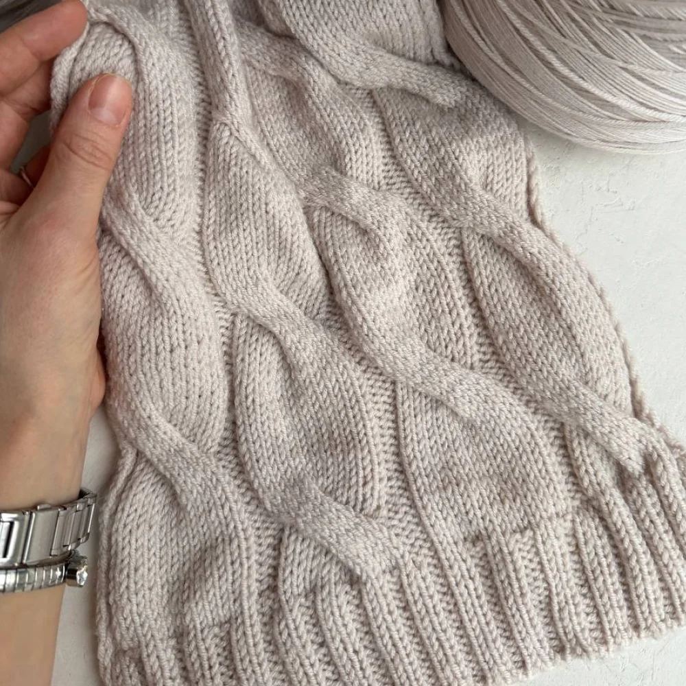 Мягкая, упругая нить прекрасно ложится в узоры, подчеркивая красоту как сложных аранов, так и лаконичной глади. Изделия из этой пряжи хорошо сохраняют форму, обеспечивают уютное тепло. Благодаря метражу 300 м можно вязать в 1 нить на спицах 3,5-4,5 мм и эта пряжа отлично подходит для вязания легких свитеров, кардиганов, шарфов и детских вещей.