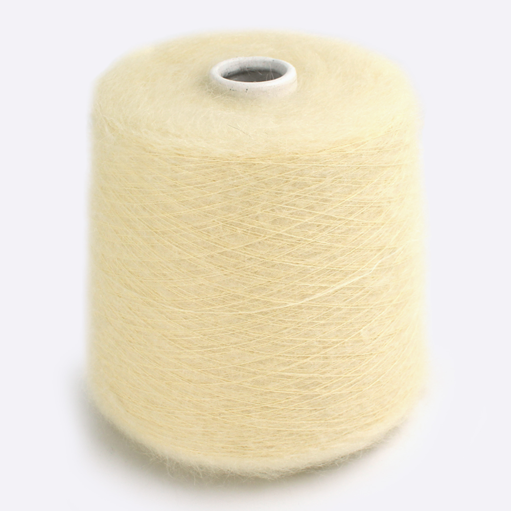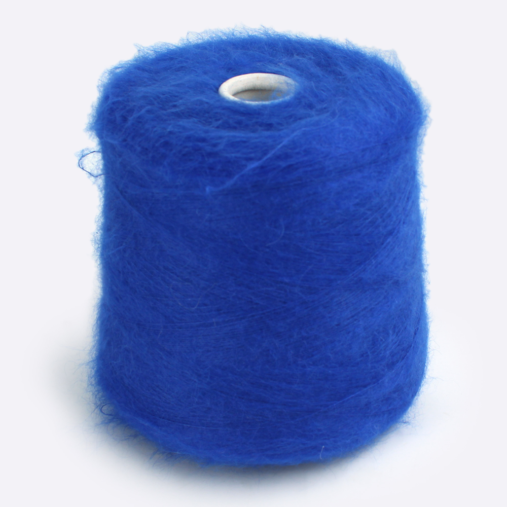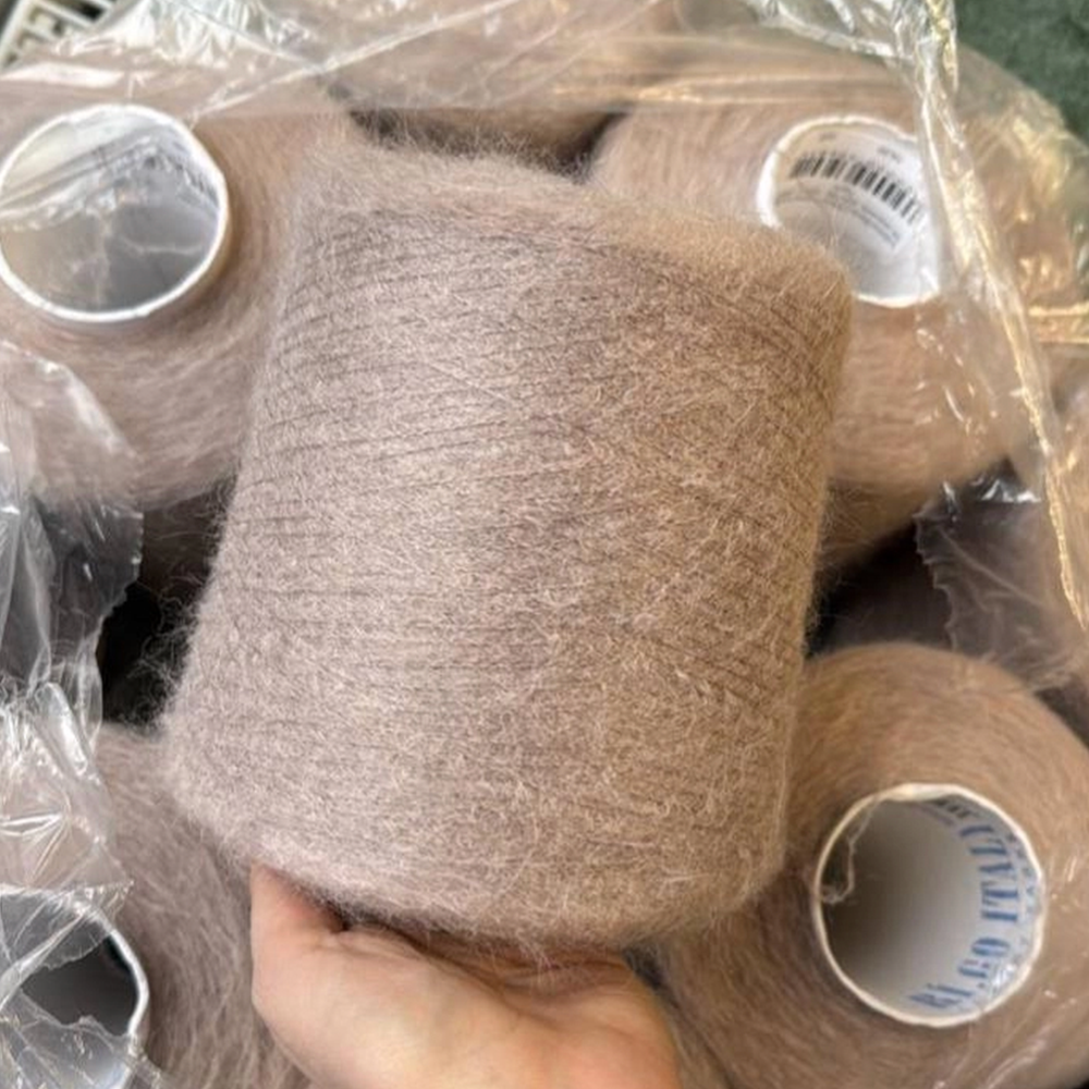 Настоящий кидмохер производится из руна молодых козлят возрастом до 6 месяцев. Ворсинки первого пострига самые тонкие и шелковистые, поэтому пряжа из них считается самой дорогой. Для стабилизации при прядении добавляют центральную жилку из полиамида. Пряжа нежнейшая. Мы потрогали все цвета. Ноль колкости!