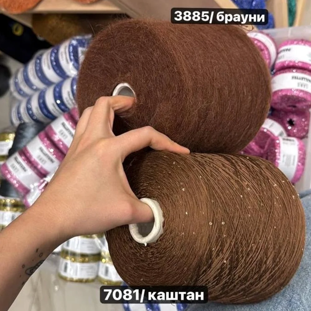 Метраж нити позволяет вязать ее в 1 нить для тончайших паутинок, в 2-3 нити для кардиганов и джемперов. Изделия из кидмохера получаются легкими, воздушными, очень нежными и при этом теплыми - идеальными для холодного сезона.
