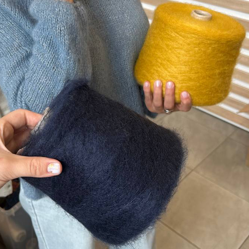 • Одежда: Кидмохер используется для вязания свитеров, кардиганов, шалей, шапок, шарфов и других предметов одежды. Он особенно популярен для создания легких, но теплых вещей, которые можно носить в прохладное время года.