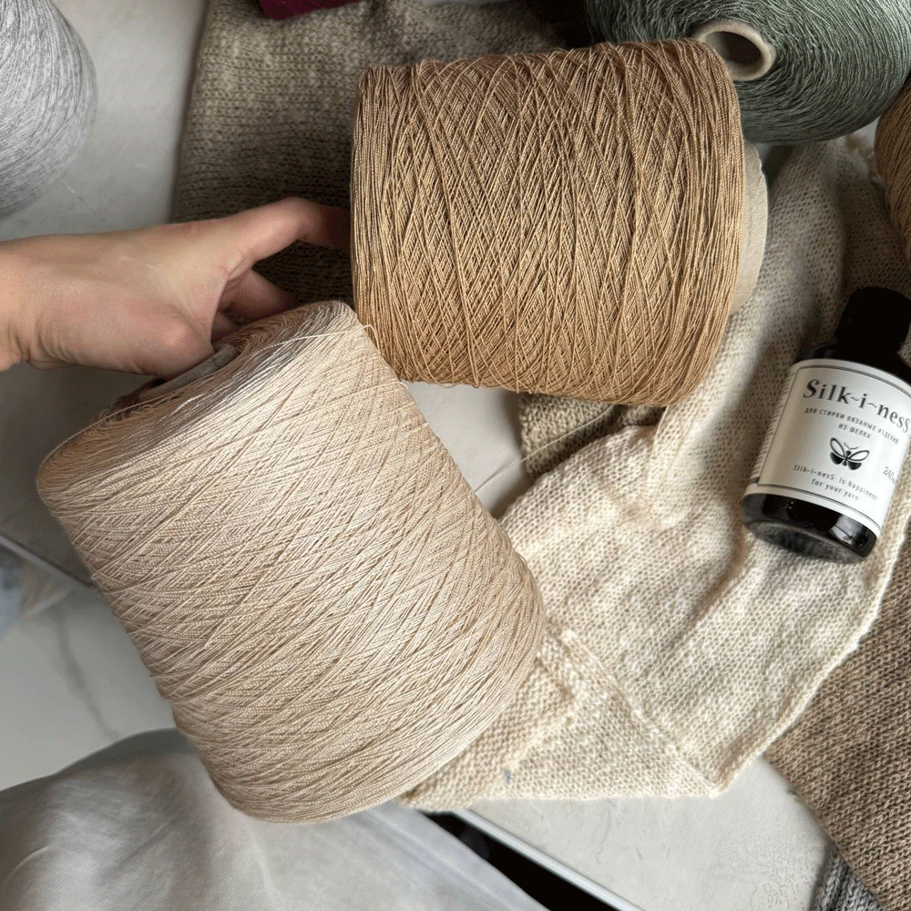 Ricoperto — пряжа из 100% шелка шаппе. Это шелк из средних по длине волокон, около 15 см. Он мягче малберри, обладает более матовым сиянием — и его всегда на зубок в Италии. Забрали все что есть. Пряжа мягкая, рассыпчатая, фактурная. В одну нить подходит для вязания на машине 7 класса, на руках идеально вязать в три нити на спицах 3-4 мм. Ложится в полотно с выраженной фактурой, драпируется и мерцает матовым блеском.Изделия из шелка охлаждают кожу, дышат и служат годами. Вяжите летние топы, футболки, платья и туники, используйте как подмот для глубины цвета и стабильности.