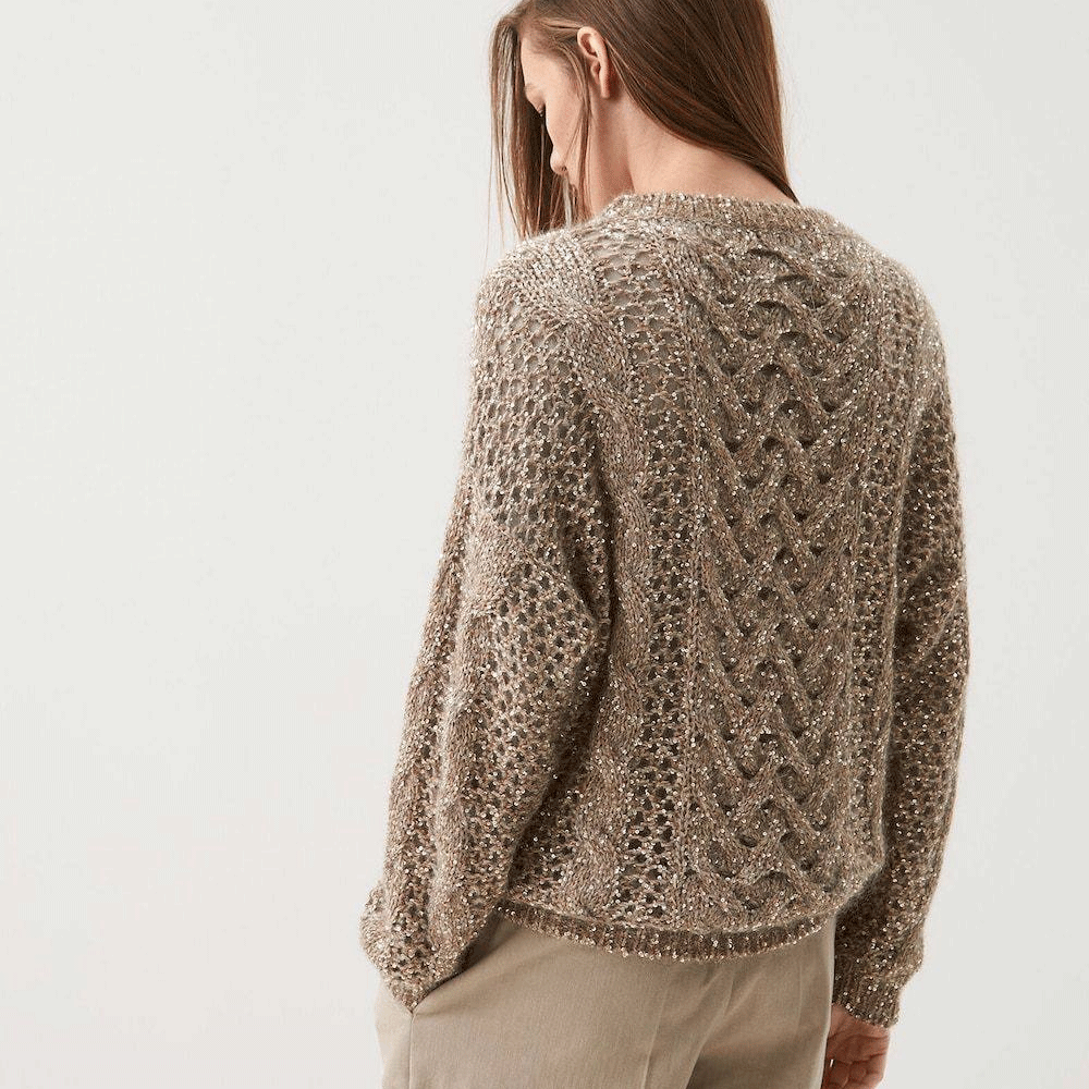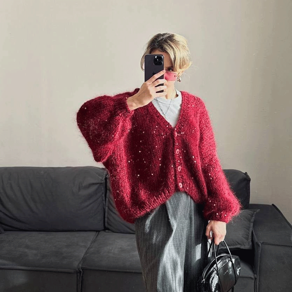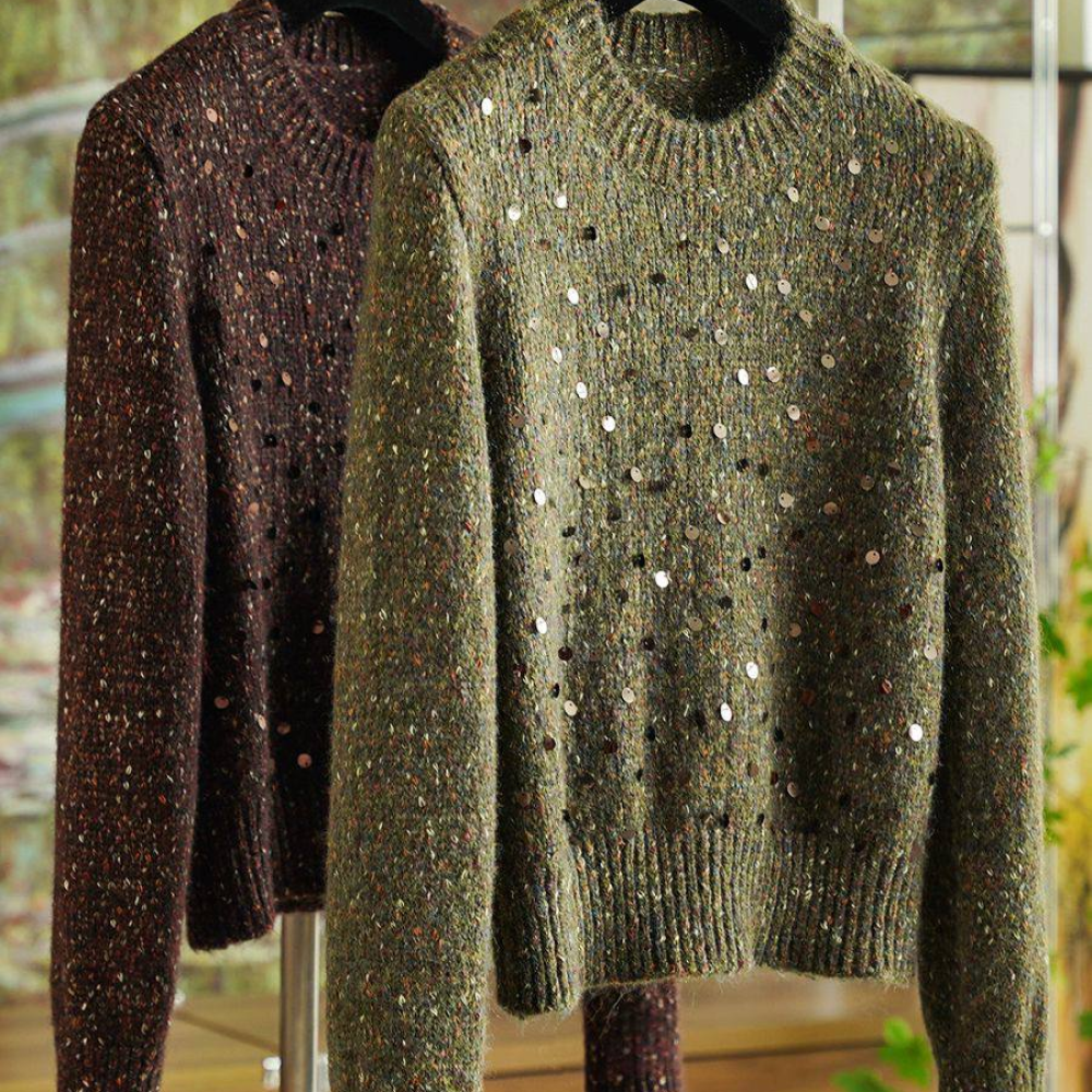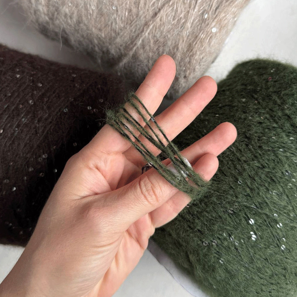 Moulin Rouge — легкая и воздушная пряжа из альпака с деликатным сиянием пайеток. Скрутка неплотная, альпака почти что ровничного типа, за счет чего изделие получится особенно пушистым и комфортным.