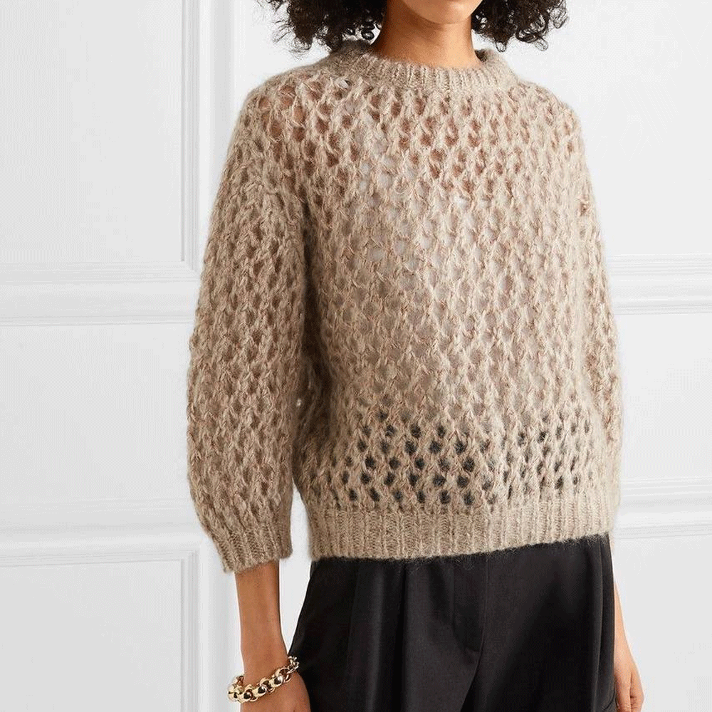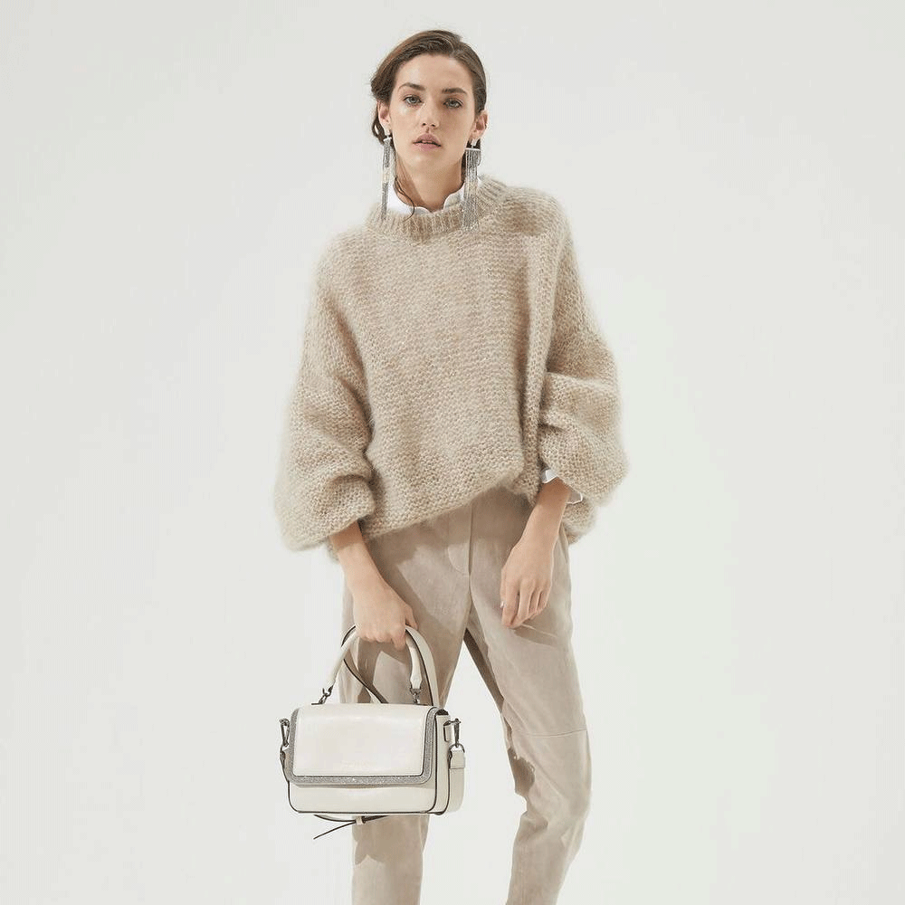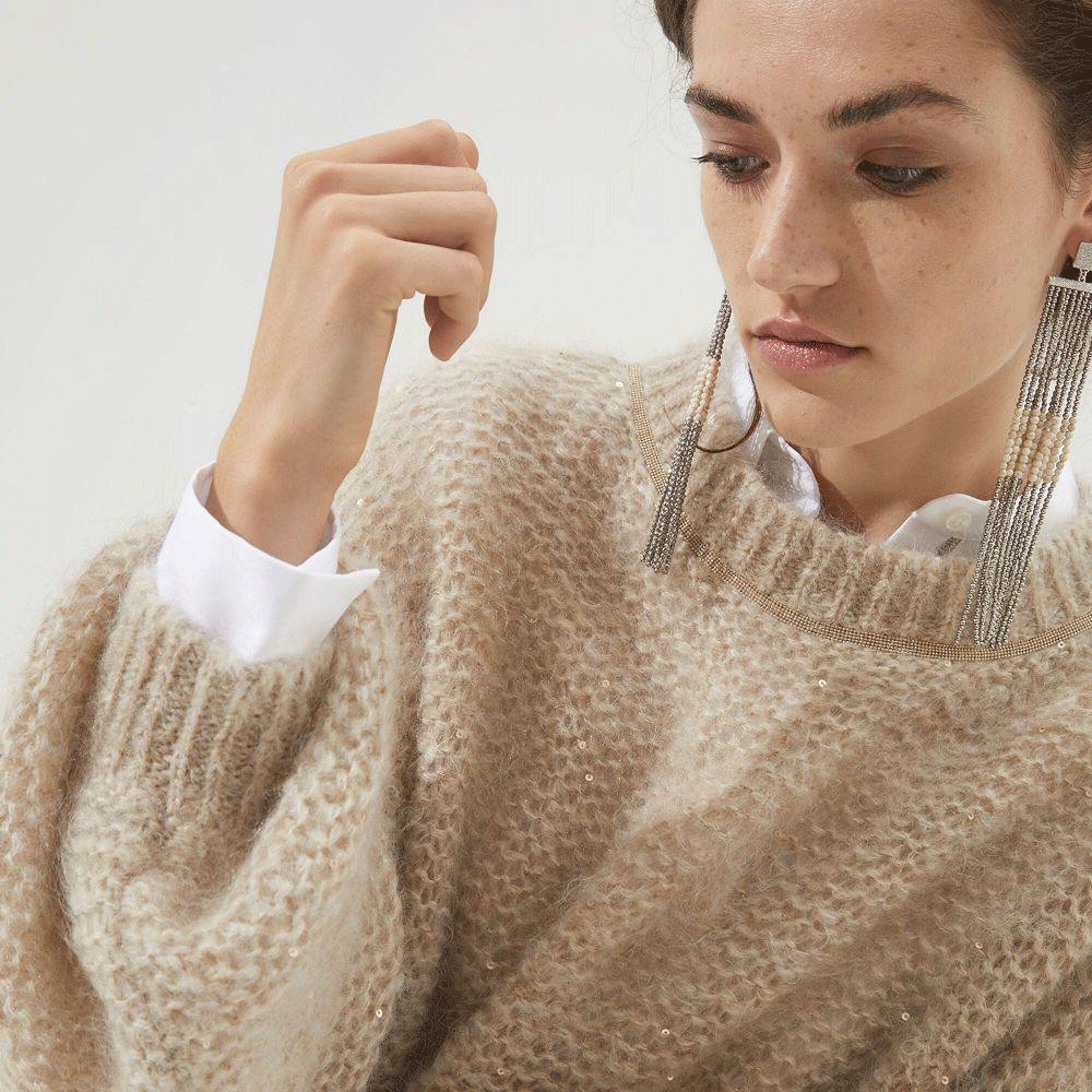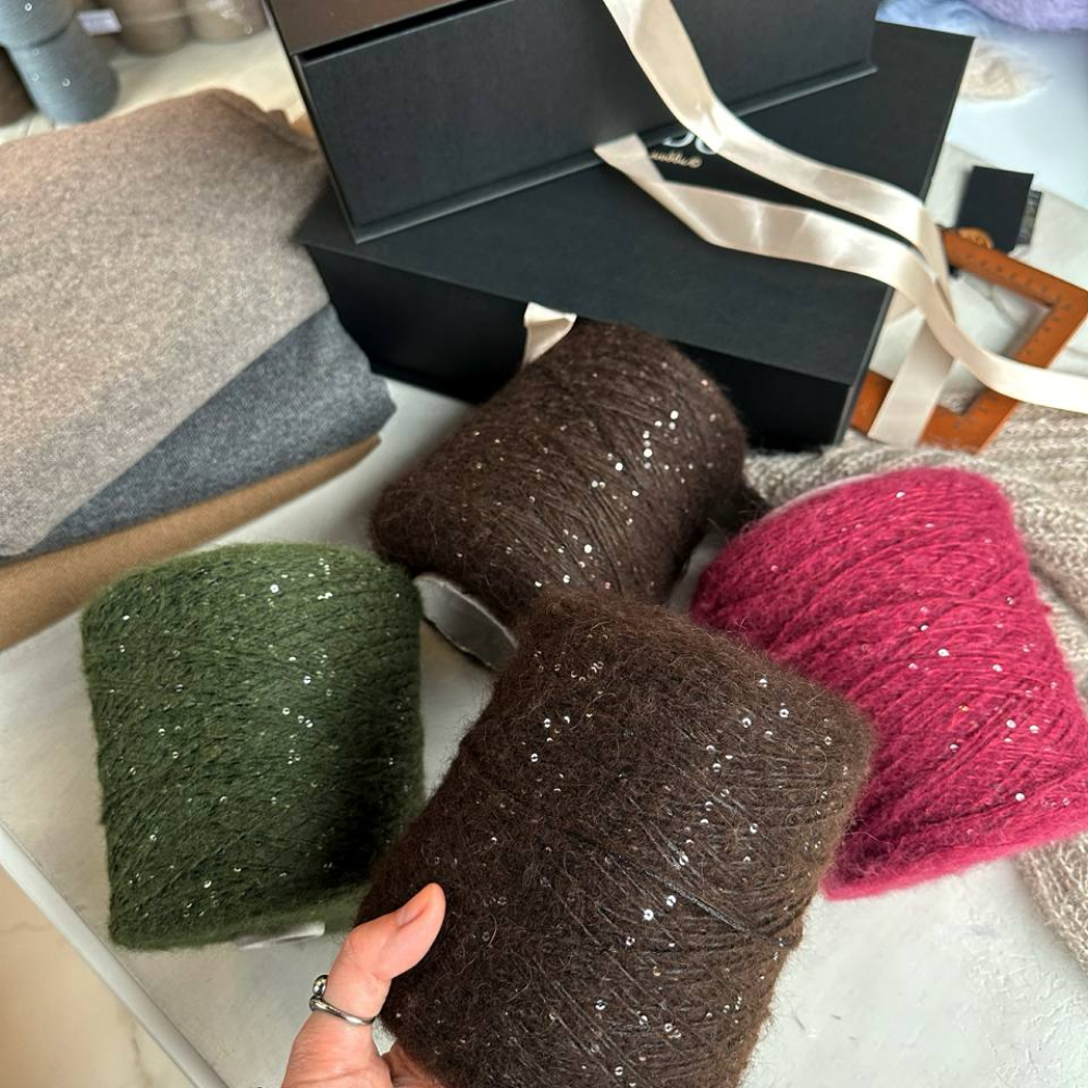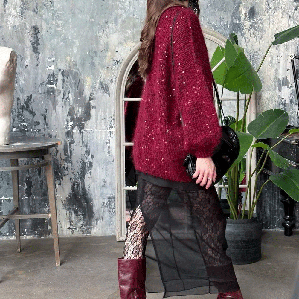 Moulin Rouge — легкая и воздушная пряжа из альпака с деликатным сиянием пайеток. Скрутка неплотная, альпака почти что ровничного типа, за счет чего изделие получится особенно пушистым и комфортным.