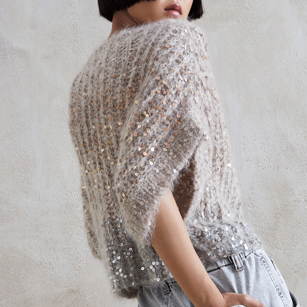 Прозрачные пайетки утопают в облаке ворса и вспыхивают при движении. Создает объемное, мягкое и пластичное полотно. Вяжите свободно на спицах 4,5-5,5 мм, чтобы ворс раскрылся после ВТО. Moulin Rouge подойдет для уютных и сверкающих джемперов, платьев, кардиганов.Расход. На джемпер 44-46 размера — 500 г, на кардиган — 600-700 г, на платье — 800-900 г.