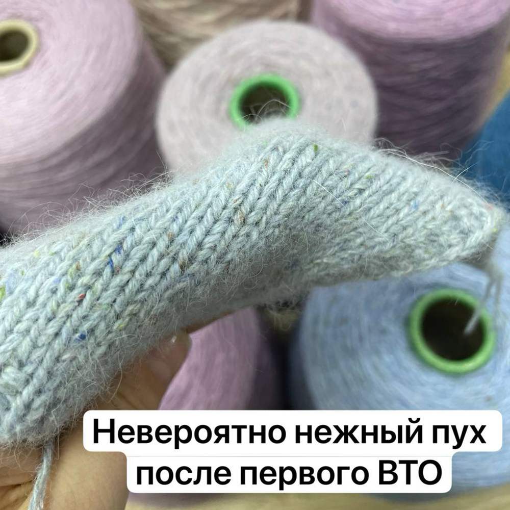 Кашемир обеспечивает невероятную мягкость, тепло и нежный пушок, а шелк добавляет благородный блеск, прочность и износостойкость. Твидовые вкрапления придают нити особый шарм, создавая лёгкий эффект неоднородности и объёмности в готовых изделиях. Такая текстура идеально подойдёт для создания стильных вещей с уникальным характером.