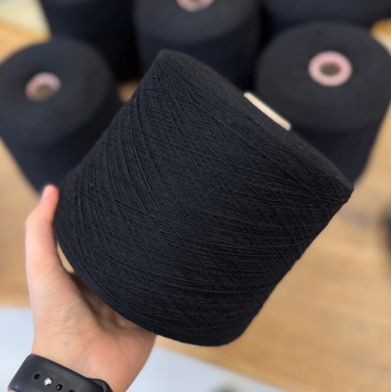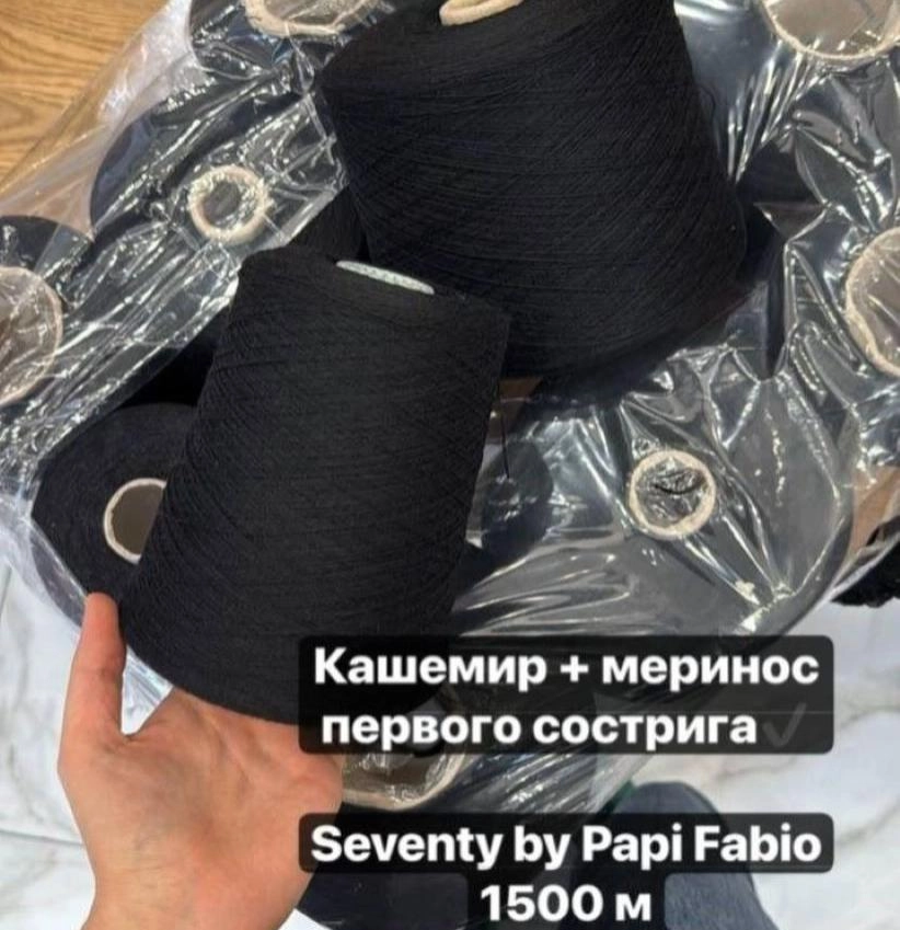 Великолепная смесовка мериноса первого сострига и кашемира в исключительном черном цвете. Поступления от фабрики Papi Fabio - это всегда подарок! Бобины на оригинальных конусах.