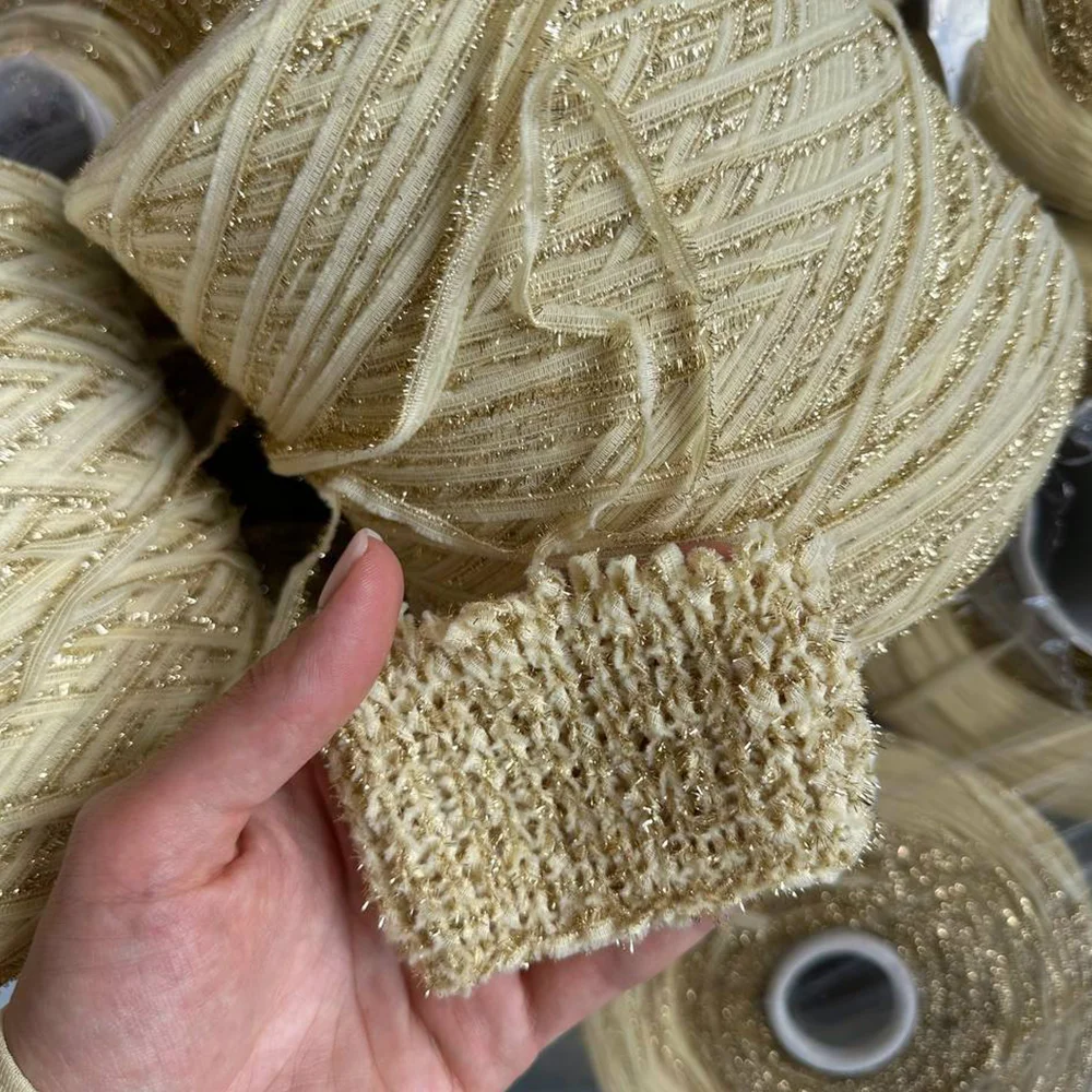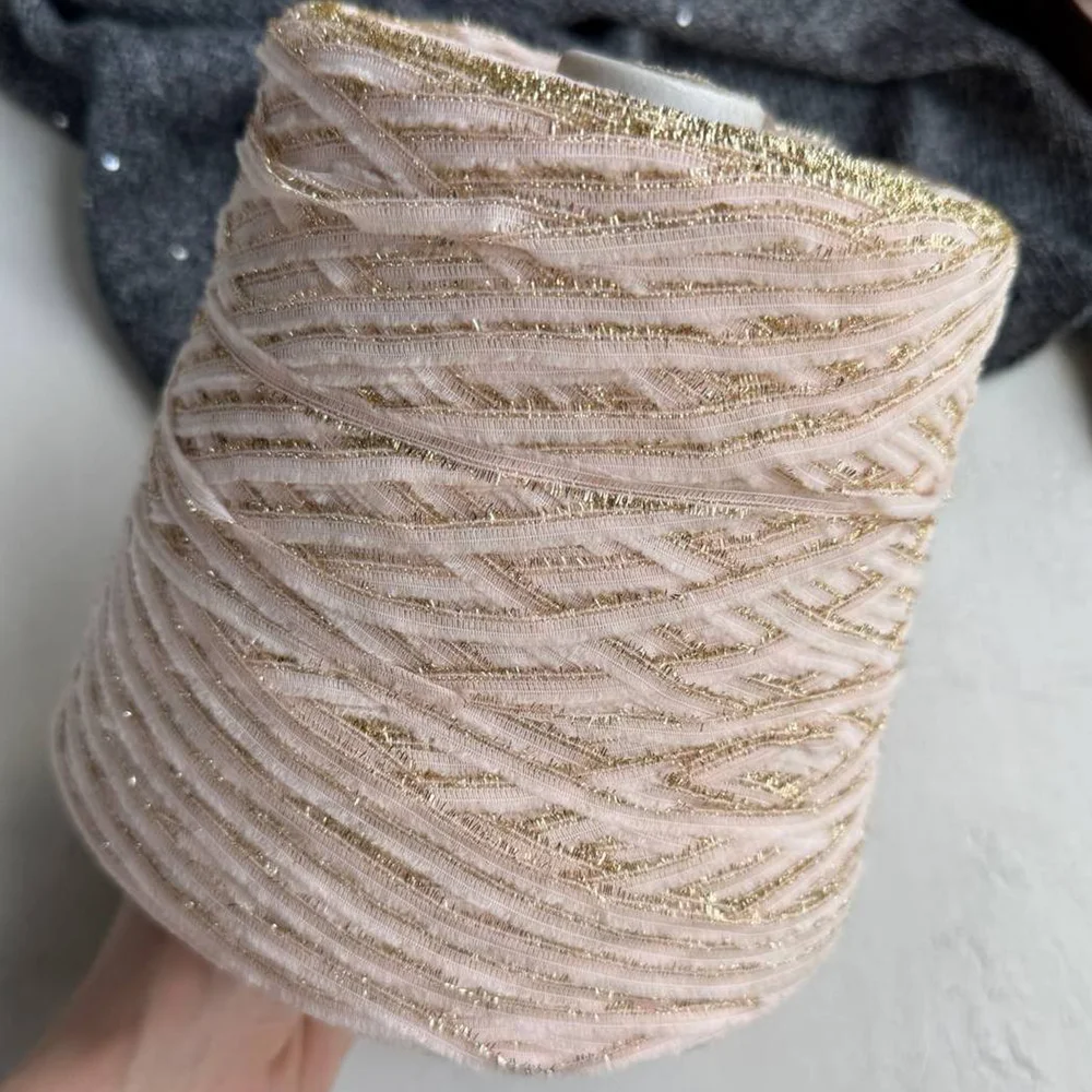 Эта уникальная пряжа сочетает в себе 50% мягкого мериноса, 40% прочного полиамида и 10% люрекса, создавая неповторимый эффект роскошной ткани. Выполнена в виде плоской ленты, обрамленной с одной стороны бахромой из люрекса, а с другой — мягким вспушенным мериносом, Jade придает вашим изделиям особую текстуру и изысканность.