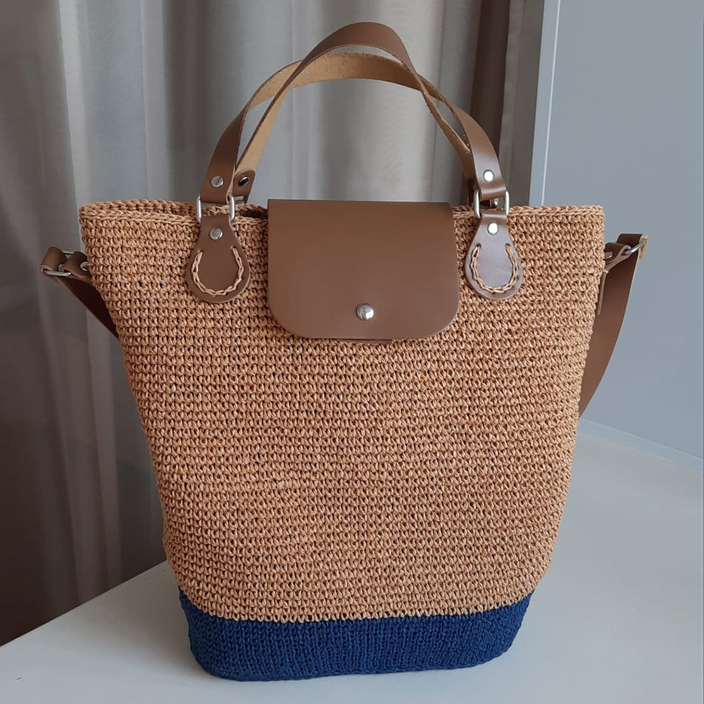 Рафия, напротив, имеет в листьях натуральную смолу, которая увеличивает ее долговечность. Также она делает каждую прядь гибкой и податливой, удивительно эластичной и слегка водонепроницаемой, предотвращая ее растрескивание и ломкость с течением времени. Таким образом, рафия современный, прочный, долговечный, податливый, гибкий и легко окрашиваемый продукт. Это позволяет мастерицам проявлять творческий подход к дизайну, технике вязания и производить аксессуары, которые универсальны (свертываются и упаковываются) и, что наиболее важно, модны.