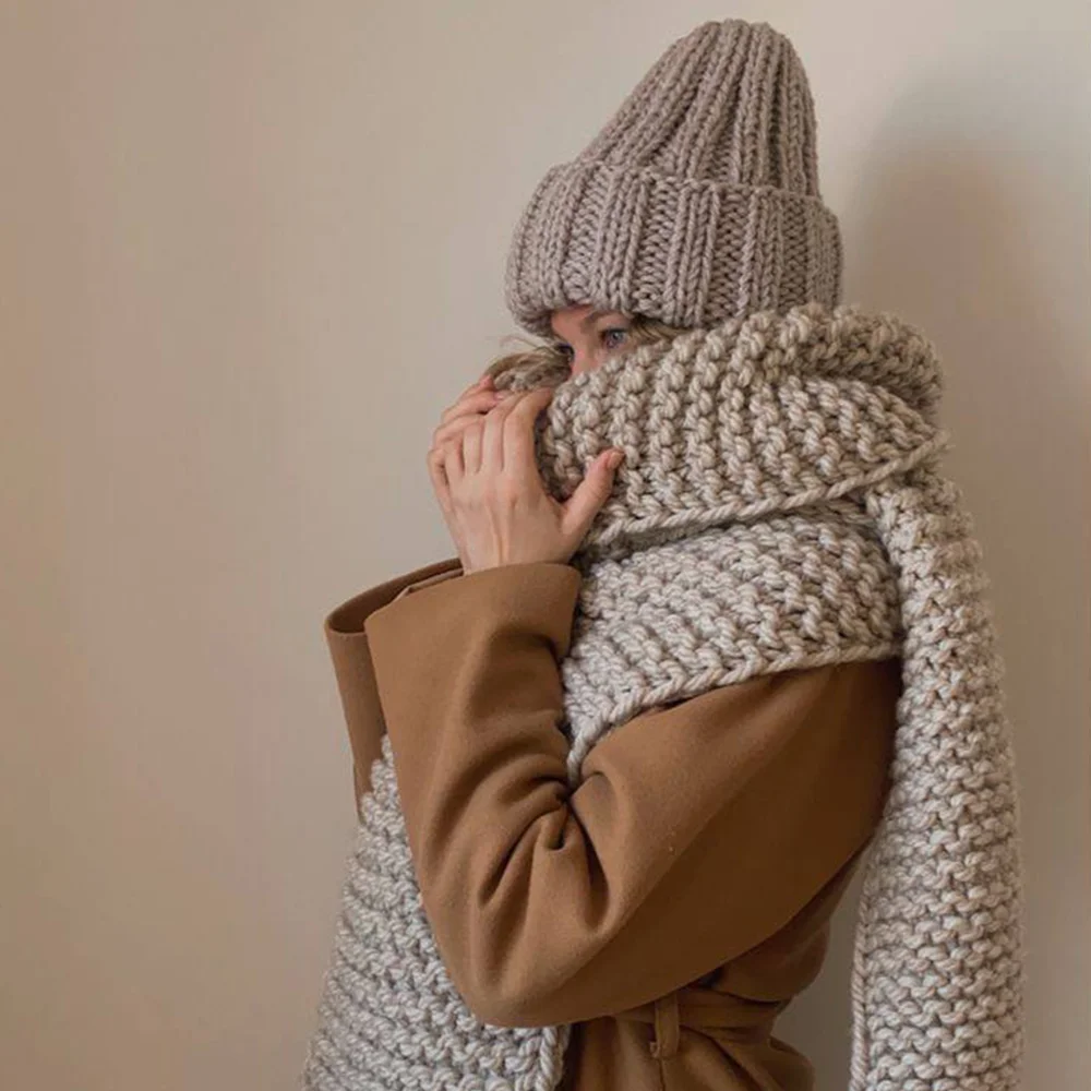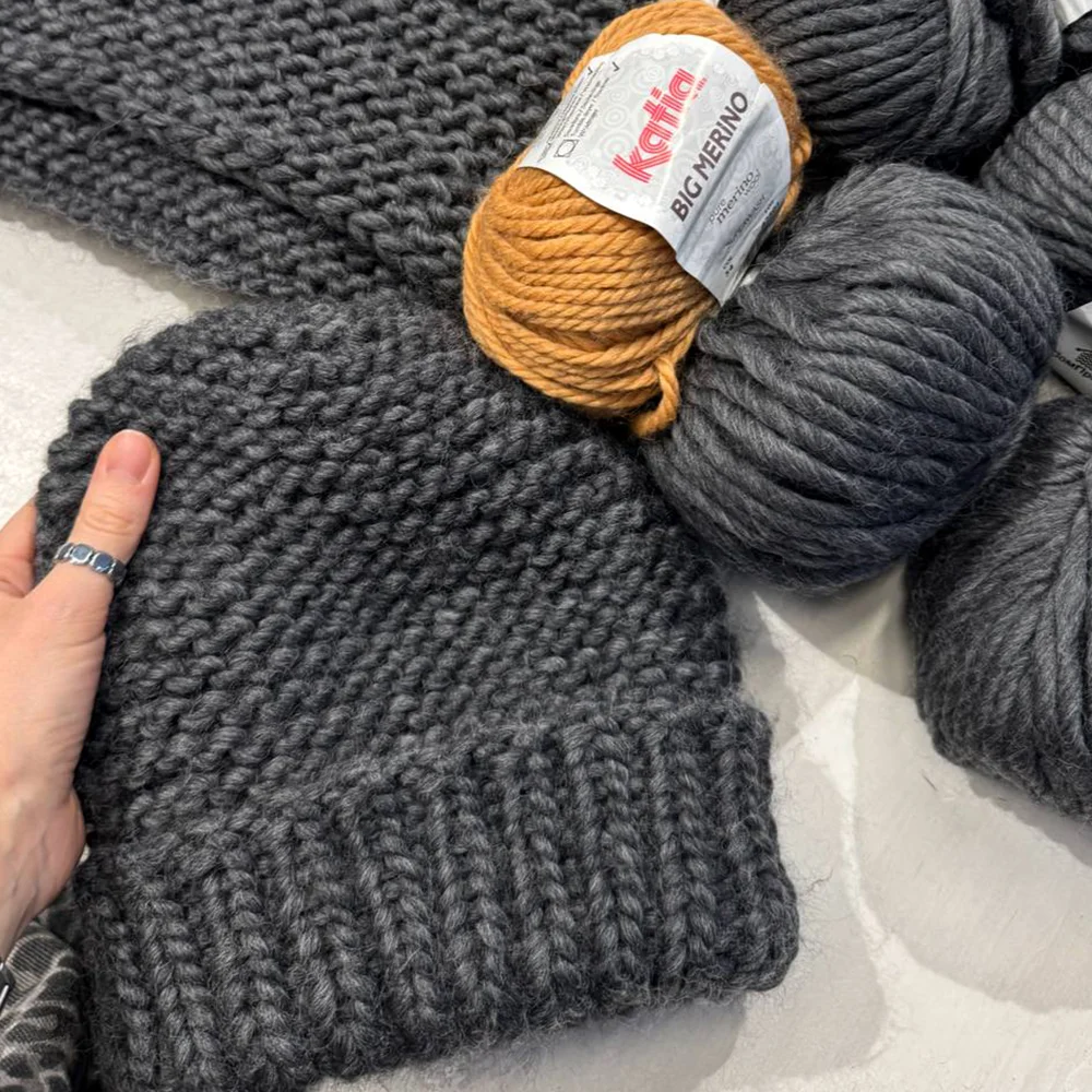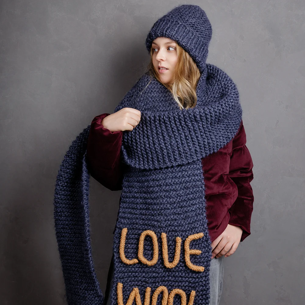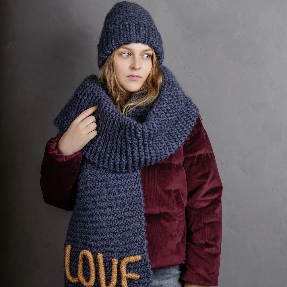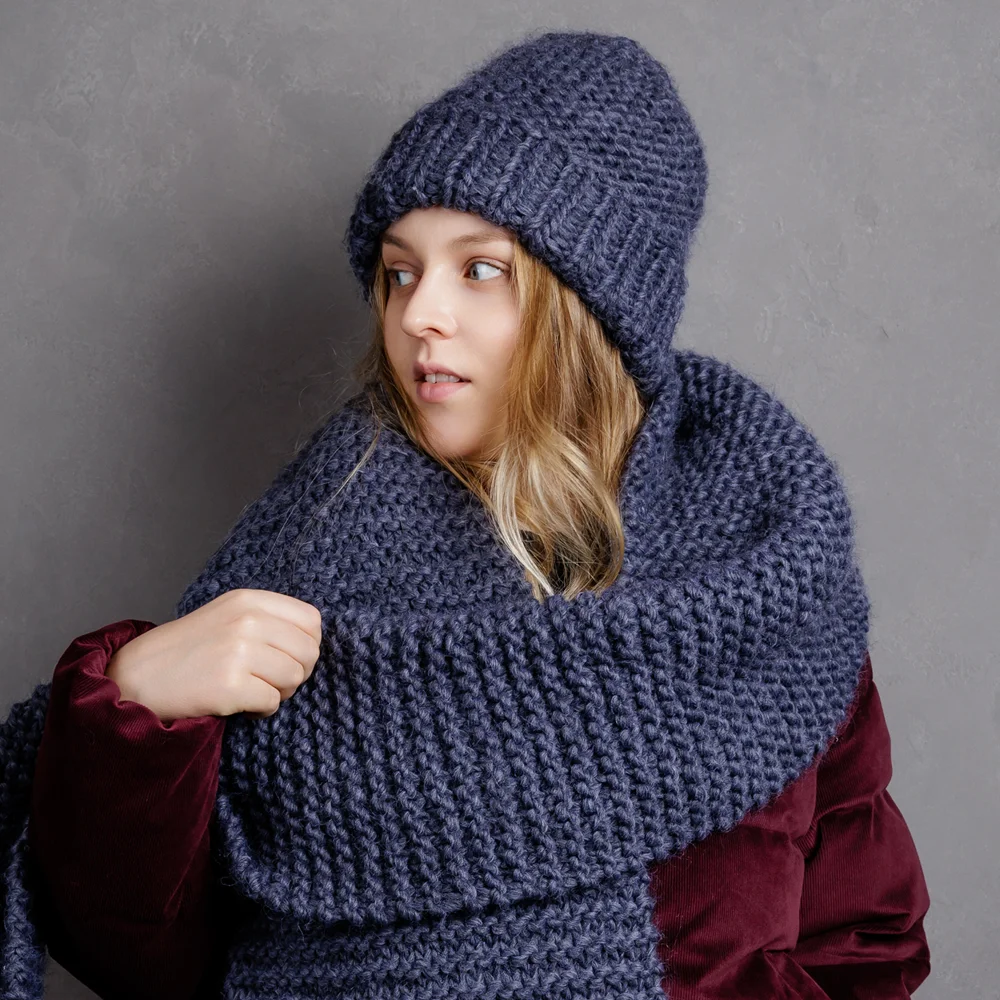 Расход: на шапку с отворотом – 2 мотка, на шарф – 10 мотков, на джемпер 46-48 размера – 10-12 мотков.