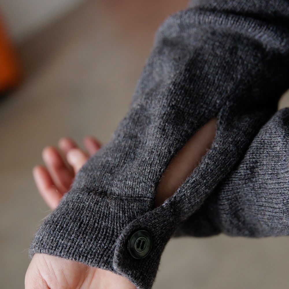 ⁃ Оформим вертикальную планку и манжеты пуговицами и отверстиями для них