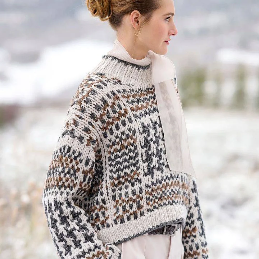 В рамках совместника предусмотрены материалы о том, каким образом учесть собственные пожелания относительно свободы облегания и длины изделия. Также рассмотрим технику вязания жаккарда по кругу и поворотными рядами. Свяжем свитер без длинных протяжек по изнаночной стороне.
