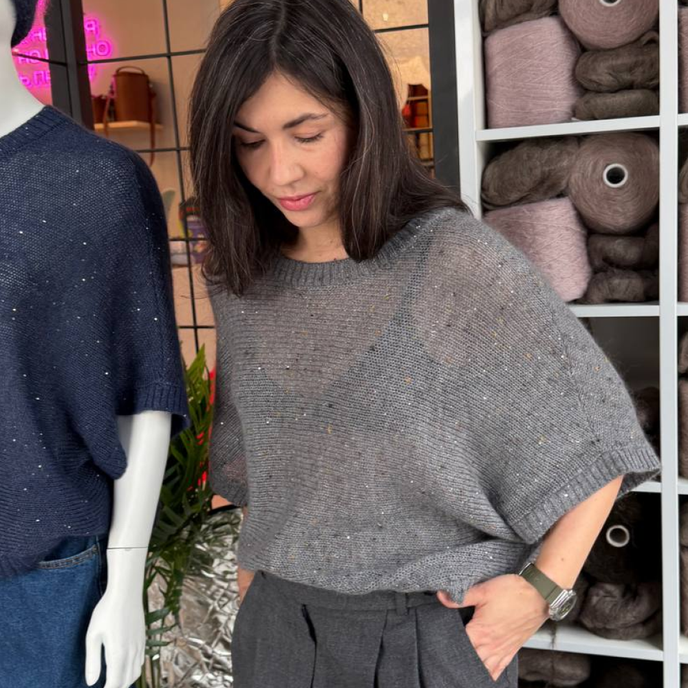 - Бобина LINOSisik Сисик (72% лен, 20% шелк, 8% пайетки, 450 м/100 г) – 250/300/350 г