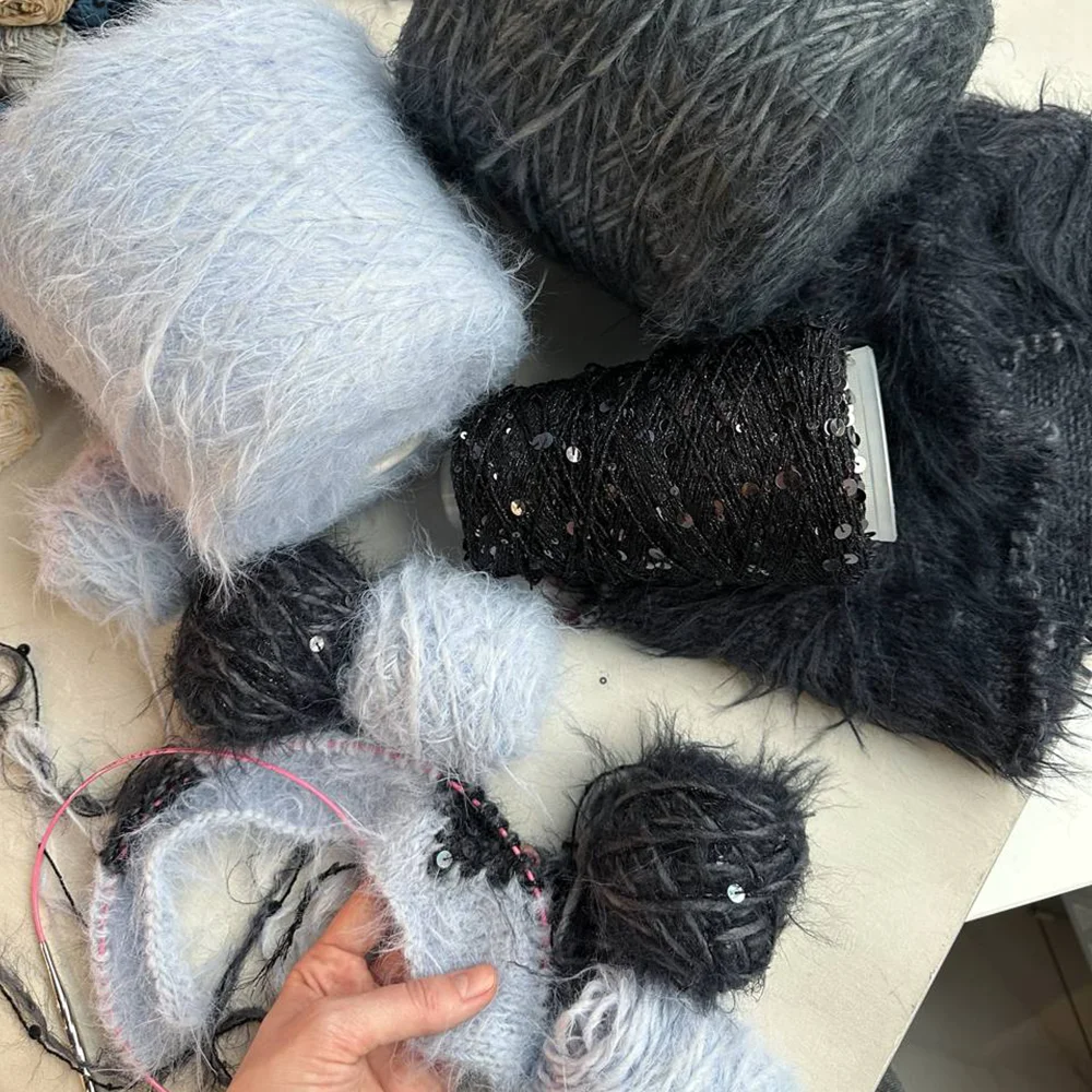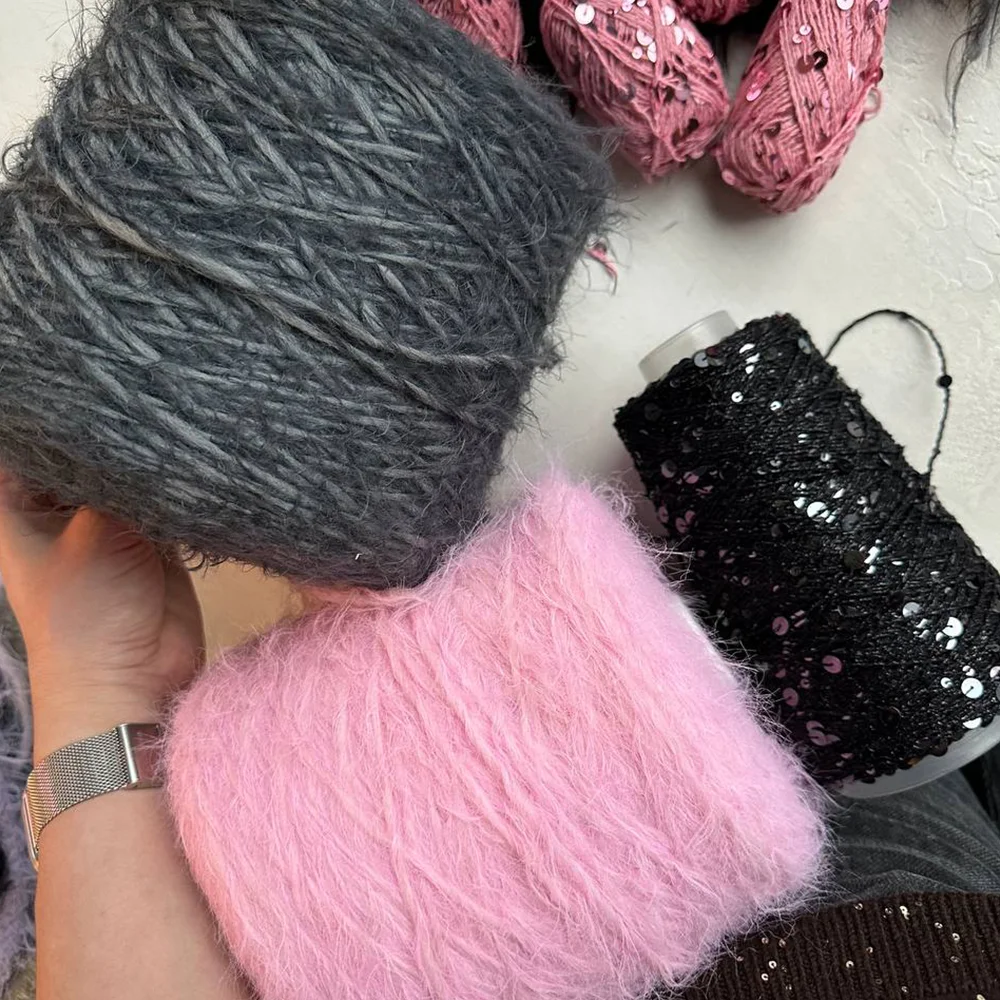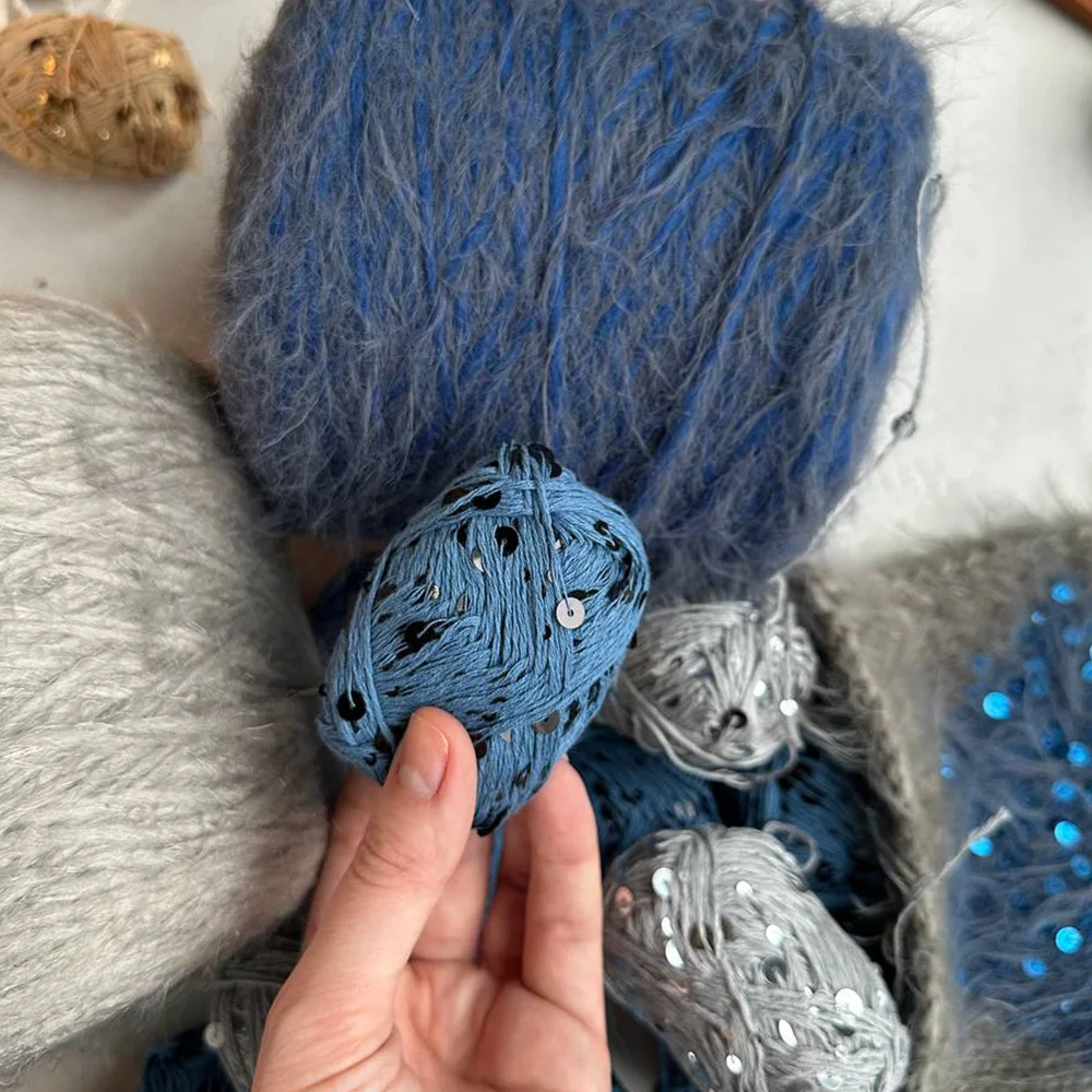 - Бобина Soft Padla (50% меринос, 50% ПА, 200 м/100 г) / (основной цвет) – 800/400 г + 200 г другой цвет, для сочетания с пайетками