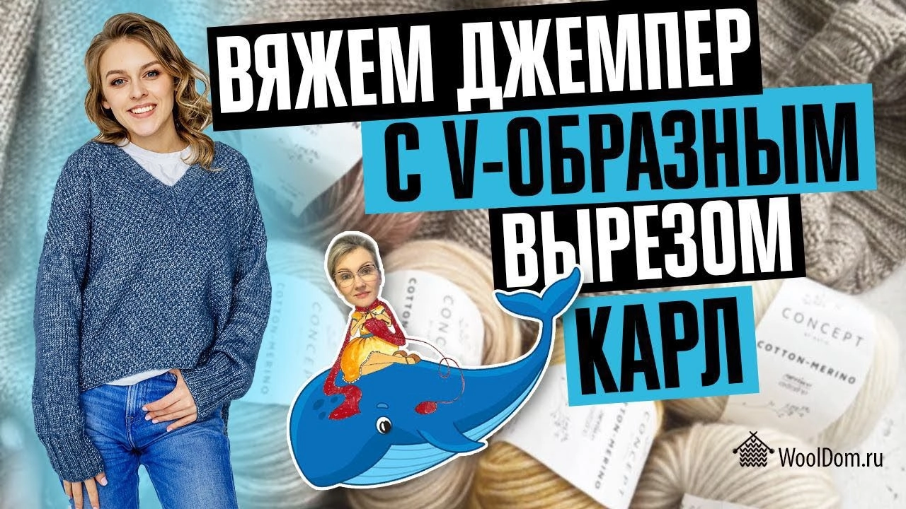 Прямой эфир с Юлей на тему совместника по вязанию джемпера с v-образным вырезом....