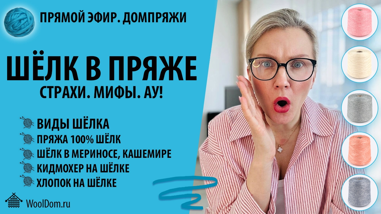 Прямой эфир о видах шелка; пряже 100% шелк; шелке в мериносе и кашемире; кидмохере на шелке и о ...