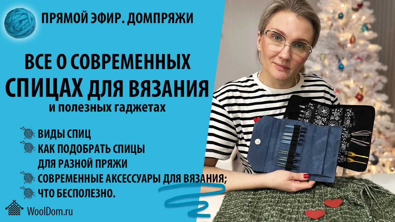 В прямом эфире вы узнаете: о видах спиц, как выбрать спицы и о современных аксессуарах для вязания....