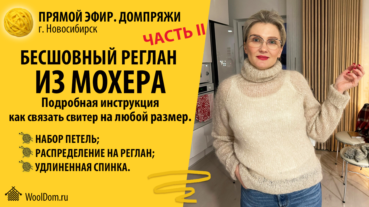 Прямой эфир с Юлей на тему совместника по вязанию джемпера с v-образным вырезом....